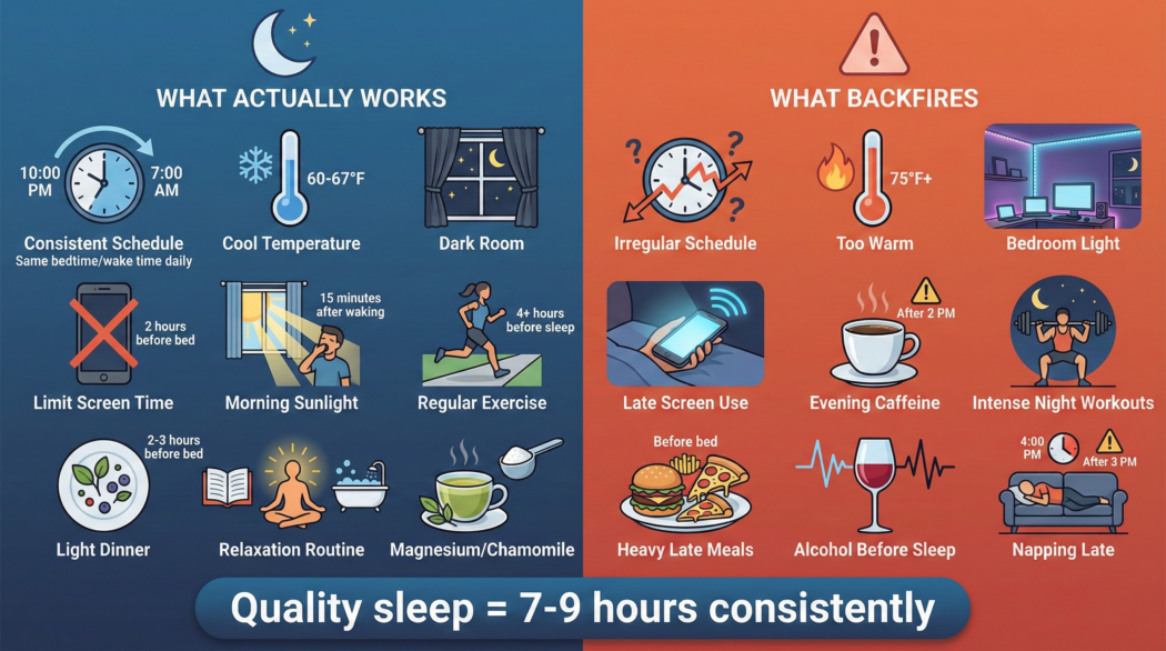 Getting more sleep doesn’t always mean better sleep. This guide breaks down what actually improves sleep quality — and which common habits quietly make sleep worse.