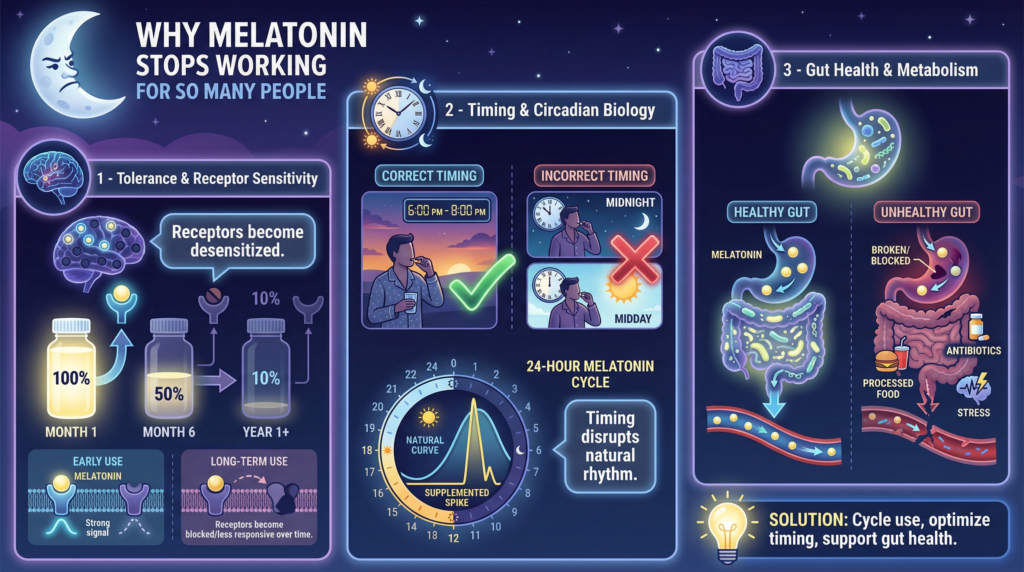 Why Melatonin Stops Working: Tolerance, Timing, and Gut Health